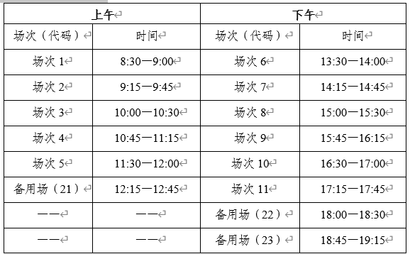 英语四级口语考试(CET-SET4)考试时间为5月18日,英语六级口语考试(CET-SET6)考试时间为5月19日,具体场次安排如下: