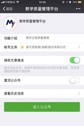 扫描界面下方二维码,或搜索“教学质量管理平台”,关注教学质量管理平台微信公众号,登录教学评价系统。
