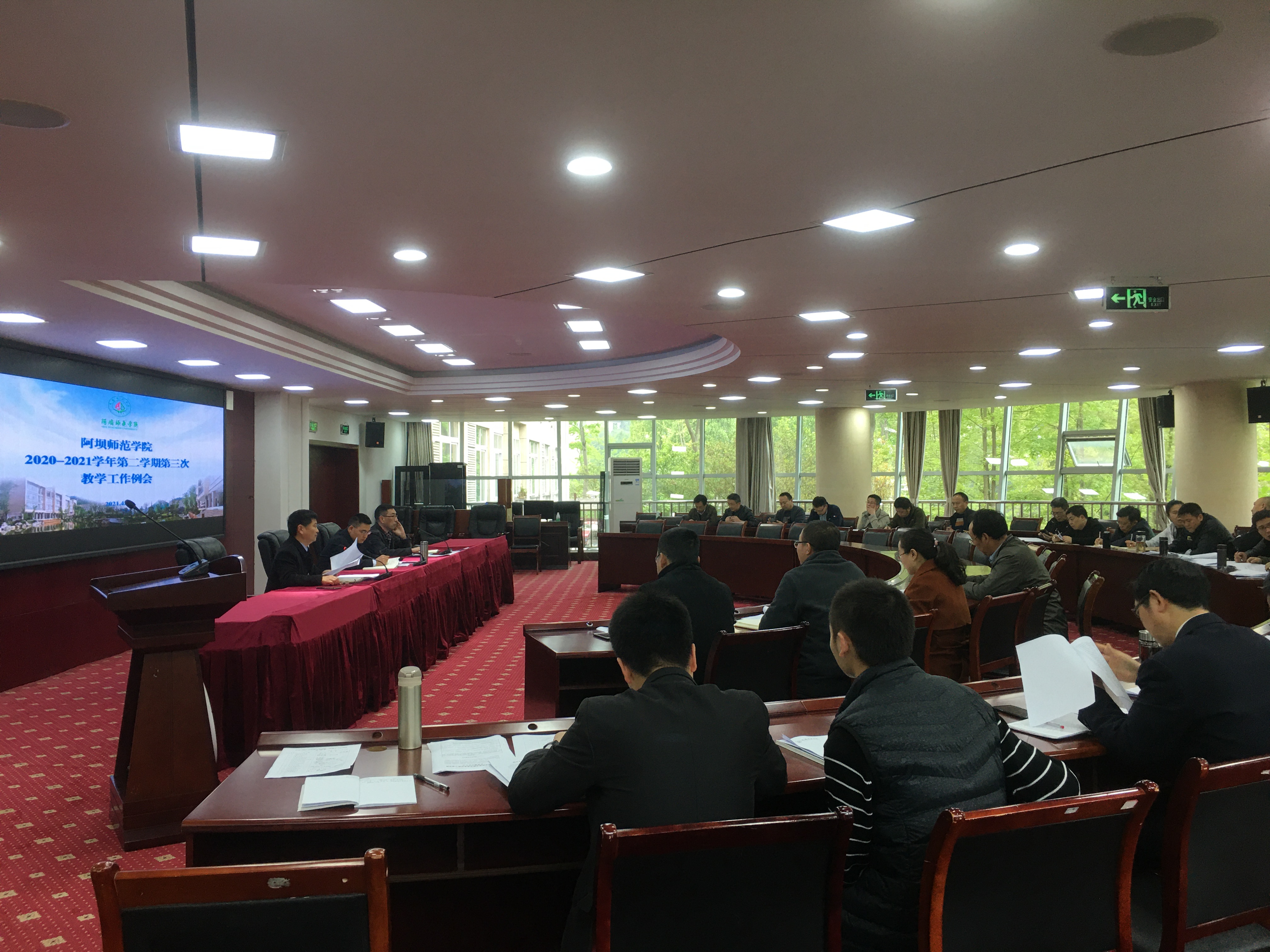 4月14日下午,2021年春季学期第三次教学工作例会在行政楼二楼会议室顺利召开。副校长毛英、各二级学院院长、副院长、教务处、发展规划处、校团委等部门负责人及有关工作人员参加了本次例会。