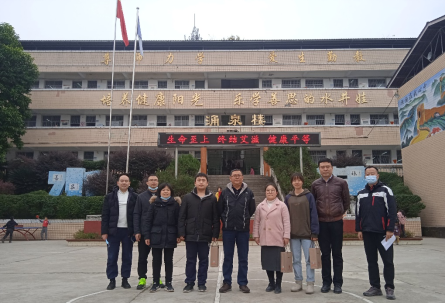 在遂宁市安居区教育和体育局相关负责人的陪同下,我校一行对实习学生的教学工作情况进行了全面了解,听取了部分实习生的汇报课,并发放了学校准备的慰问品,开展了座谈交流会。