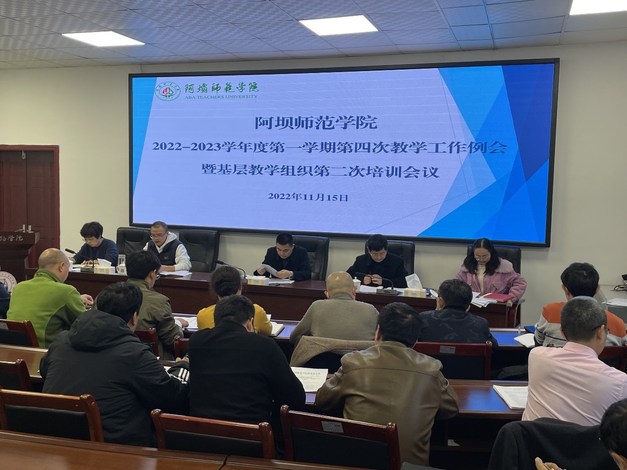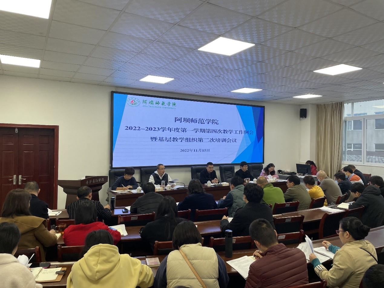 11月15日,2022-2023-1学期第四次教学工作例会暨基层教学组织第二次培训在阿坝师范学院音乐舞蹈学院五楼会议室顺利召开。副校长毛英、各二级学院院长、副院长、教师工作部·人事处处长焦安勤、教务处处长吴文权、质量监控与评估处副处长袁甲、各教研室主任参加了本次会议。