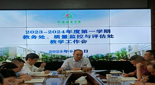 9月2日下午,2023-2024-1学期教务处、质量监控与评估处教学工作会在树人楼A101考务中心会议室召开。学校党委常委、副校长齐泽民、质量监控与评估处和教务处全体人员参加本次会议,会议由教务处吴文权同志主持。
