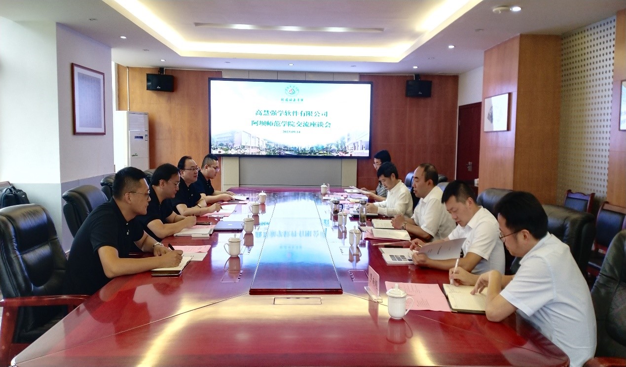 2023年9月14日,学校与达内·高慧强学公司开展校企合作、智慧文旅现代产业学院建设座谈会。阿坝师范学院党委常委、副院长齐泽民同志及教务处、对外合作处、计算机科学与技术学院等相关负责人、工作人员参加座谈会。