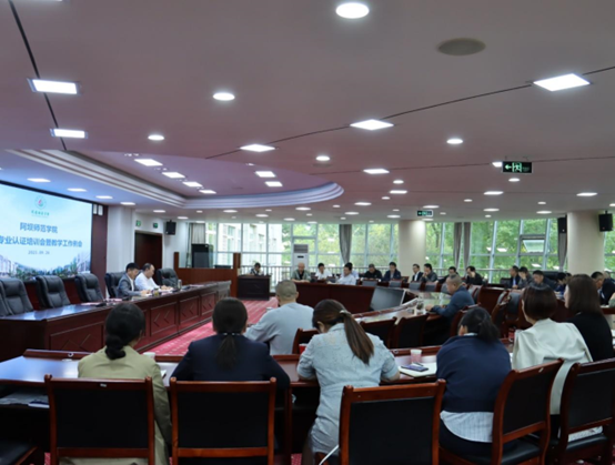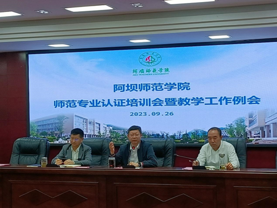 2023年9月26日,我校召开师范专业认证培训会暨2023-2024新学年第一次教学工作例会会议,会议由齐泽民副校长主持。校长向武、副校长齐泽民出席会议。质量监控与评估处、人事处及教务处负责人、各二级学院书记、院长、副院长及本科师范专业教研室主任、专业带头人参加了本次会议。