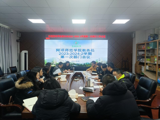 2月29日下午,2023-2024-2学期教务处教学工作会在树人楼A101考务中心会议室召开。学校党委常委、副校长齐泽民、教务处全体人员参加本次会议,会议由教务处黄成兵处长主持。