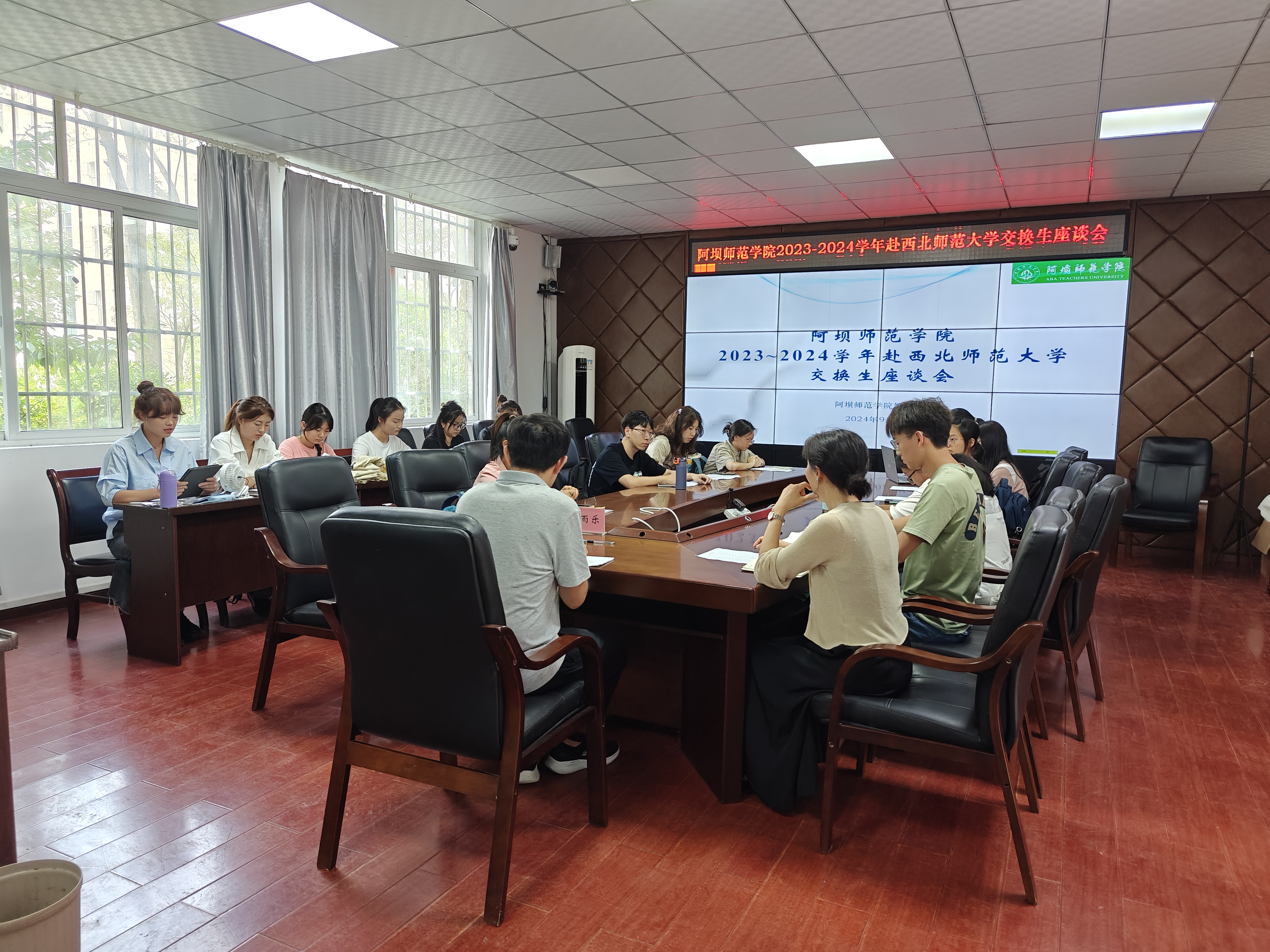 9月4日14:30,阿坝师范学院教务处在树人楼A101办公室召开2023—2024学年赴西北师范大学首批本科交换生座谈会,来自思想政治教育、英语、地理科学、物理学4个专业的15名本科交换生对交换期间的学习和生活做了简要介绍,分享了令他们印象深刻的经历,并纷纷表示非常感谢学校提供的交换学习机会。教务处副处长侯雨乐出席会议并与交换生交流,教务处运行科科长黄春华参加座谈会。