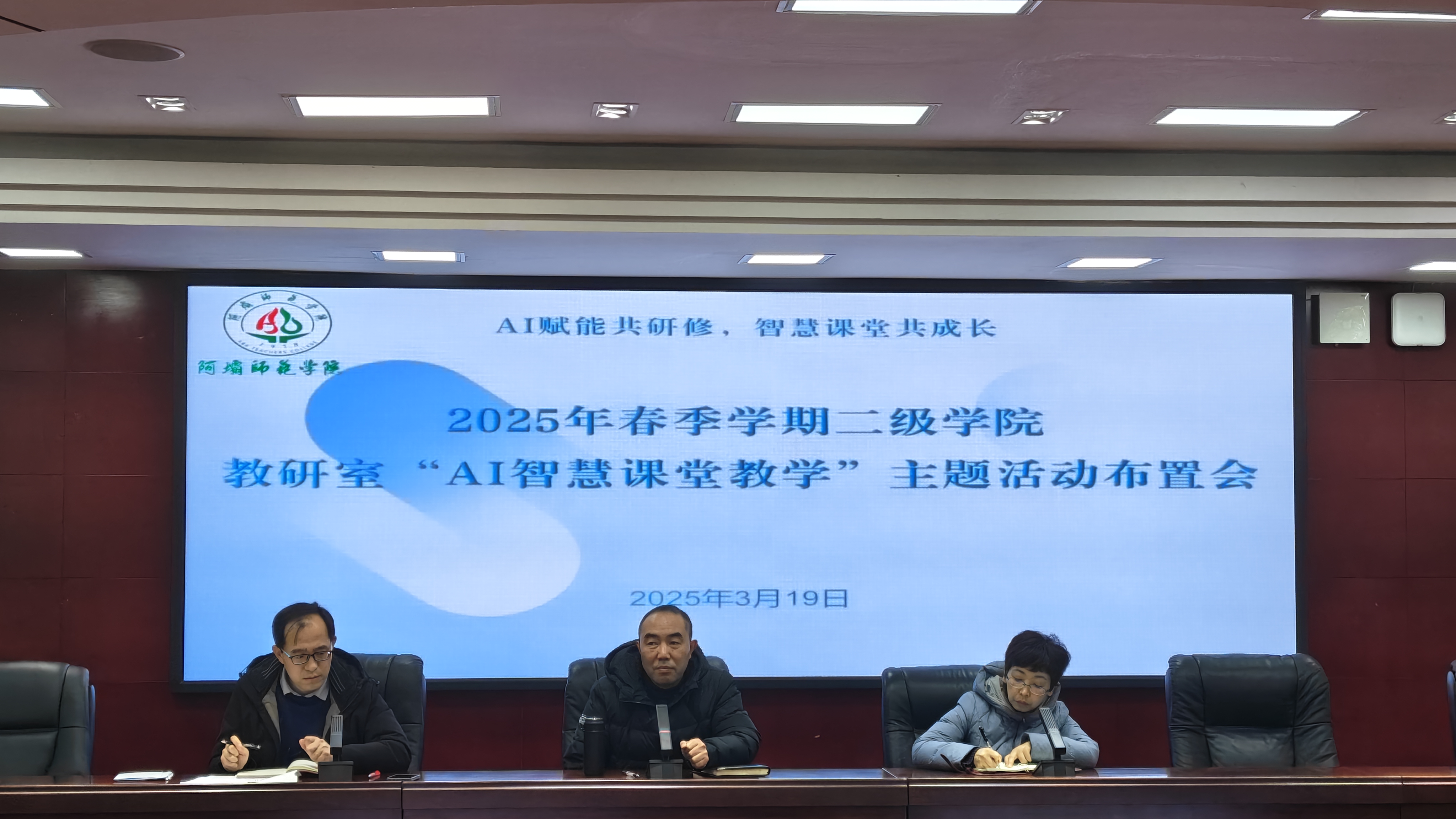 为推进学校智慧课堂+教育教学改革,充分发挥AI智慧课堂在教学中的广泛应用,同时,对标师范专业认证及硕士学位授权点建设工作要求,持续强化课程与教学论教师队伍建设,护航学校高质量发展,2025年3月19日下午,阿坝师范学院举行了2025年春季学期“AI智慧课堂教学”专题教研活动部署及课程与教学论教师座谈会。学校副校长齐泽民、人事处、教务处、二级学院、“课程与教学论”教师参加了此次会议。