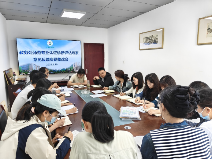 2025年5月19日,教务处根据学校师范类专业认证2025年诊断评估专家进校考查工作意见反馈,召开了认证工作整改推进会。