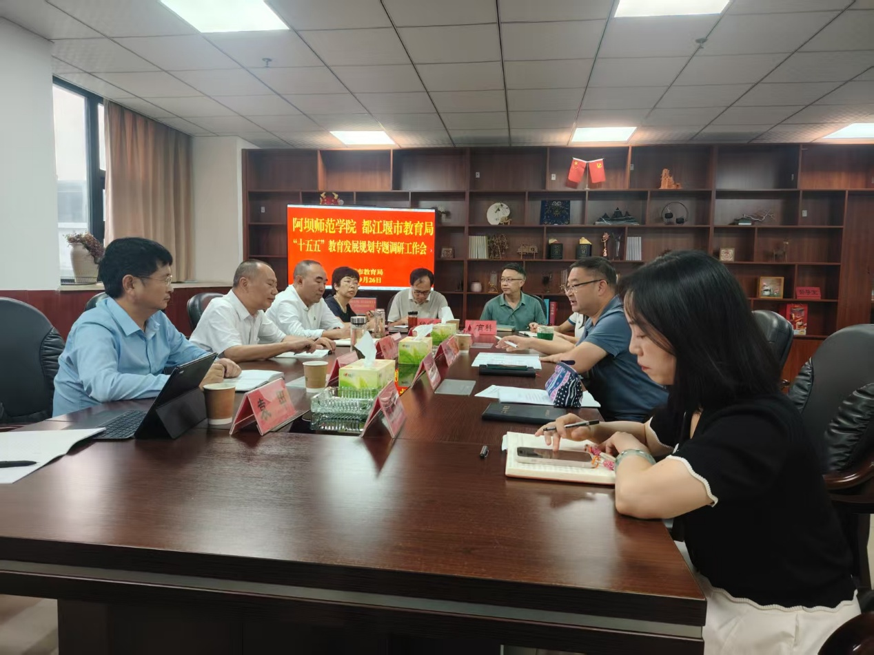 在都江堰市市教育局,调研组一行受到局党组成员王忠及相关职能部门负责人的热情接待。双方围绕区域基础教育发展趋势与未来师范生培养衔接展开深入探讨。教育局相关负责人介绍了都江堰市基础教育对教师的需求方向及主要要求。双方就教师教学能力培训、教研共创、名优骨干教师成长机制、双师双能型教师培养、示范性实践基地、教学资源保障等深化教育联盟建设展开了富有成效的探讨。