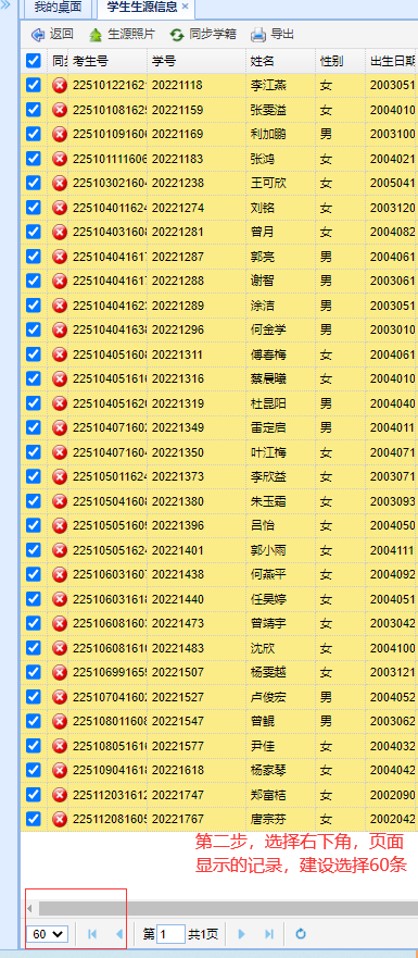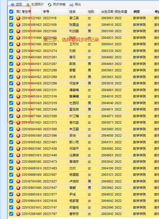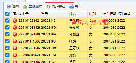 同步后:,红叉,变成绿勾,学生将同步到学籍库。